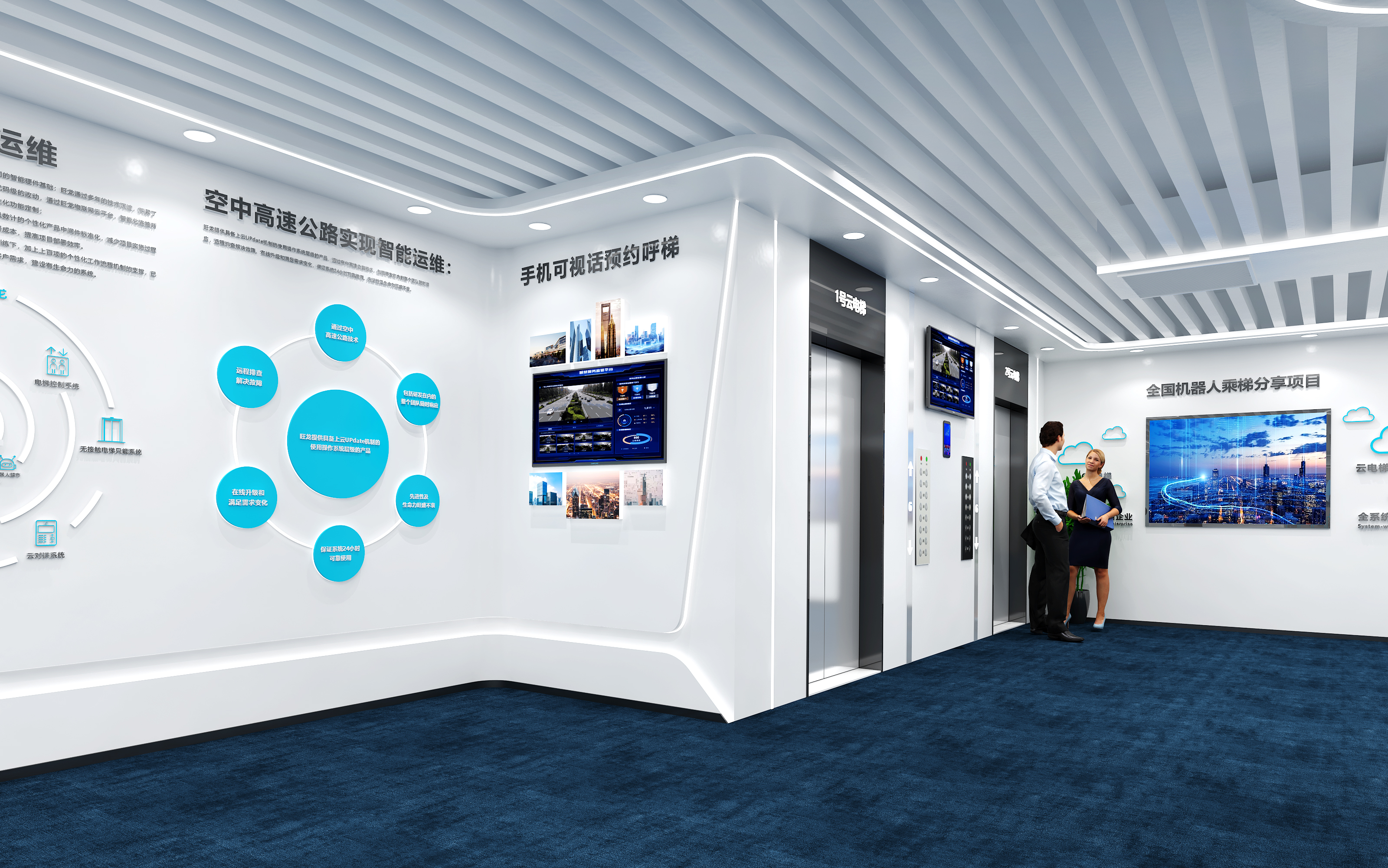 當科技的觸角悄然延伸至空間設計,當純凈白色與深邃藍色打破邊界、碰撞交融,一座承載著未來想象的展廳,正以獨特的姿態等待被探索。