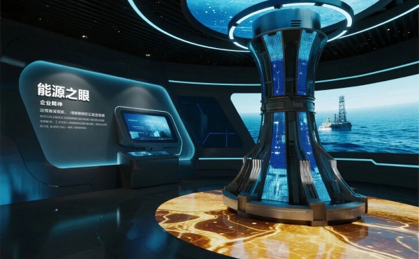 步入這座精心打造的石油裝備制造展廳,一場融合工業厚重與科技未來的沉浸式旅程即刻開啟。展廳設計公司匠心設計,從序廳“能源之眼”的垂直敘事,到智慧油田控制中心的實時推演,無不體現著對能源主題的深度挖掘與創新表達。部分展項目展示: